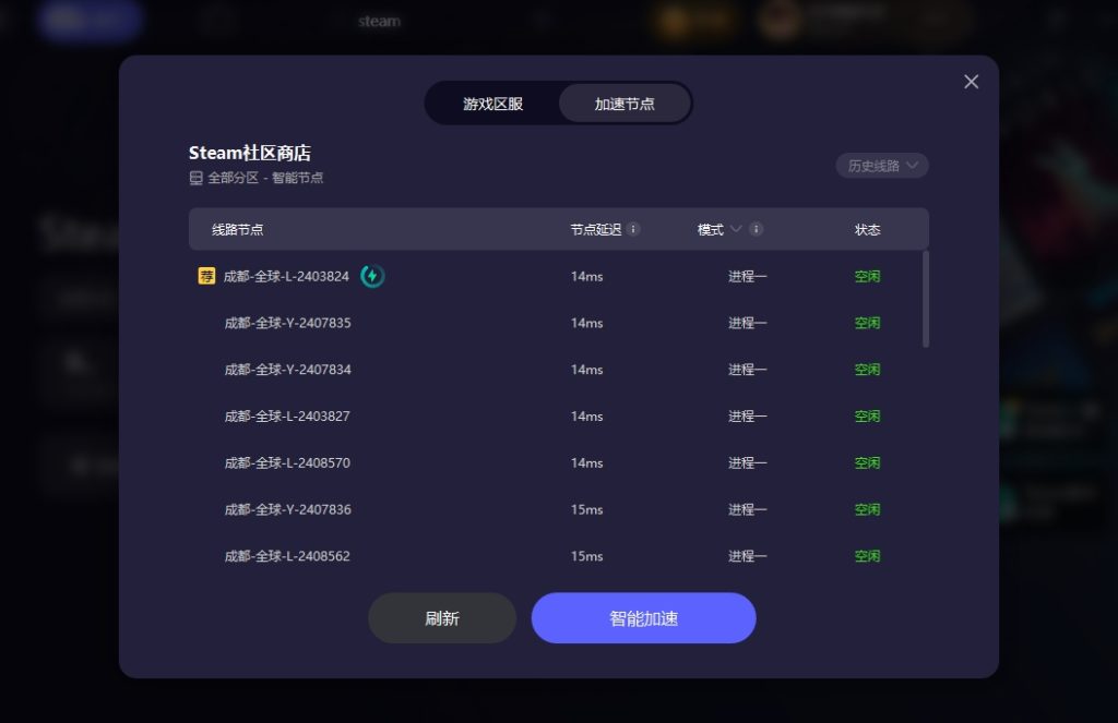 - 使用网络优化工具:使用Gi加速器,搜索【Steam社区商店】选择专用下载节点,即可优化下载速度!