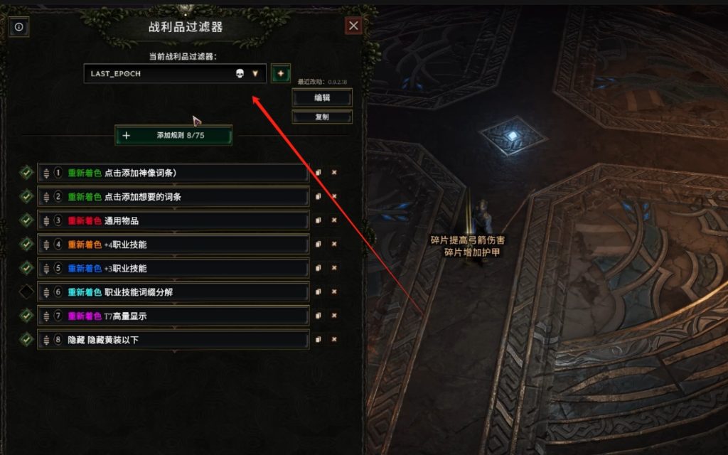 以下是《最后纪元》(Last Epoch)中导入和使用战利品过滤器的详细教程,适用于希望优化掉落物品显示、提升刷图效率的玩家。