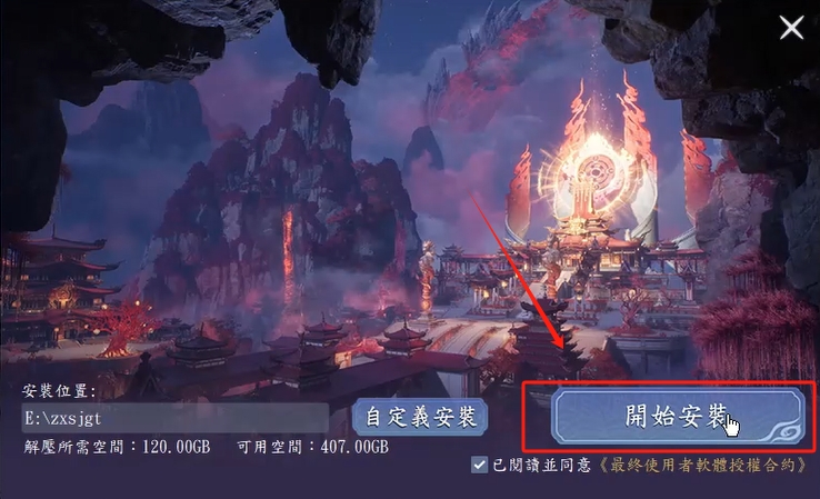 完成客户端下载后,点击开始安装游戏本体!